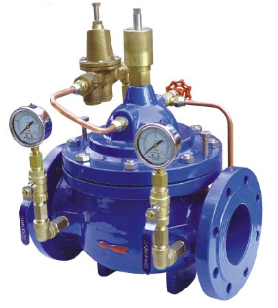 400X流量控制閥由主閥、流量調(diào)節(jié)閥、針閥、導閥、球閥、微形過濾器和壓力表組成水力控制接管系統(tǒng)。利用水力自動操作,控制和調(diào)節(jié)主閥開度,使通過主閥的流量保持不變。